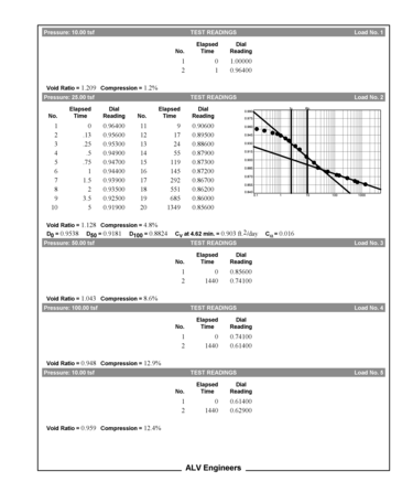Data summary reports list the raw data taken from a single consolidation test (e.g., specimen weights, test readings, etc.). You can print a summary report or export it to a file by selecting Test > Output Data Summary Report.