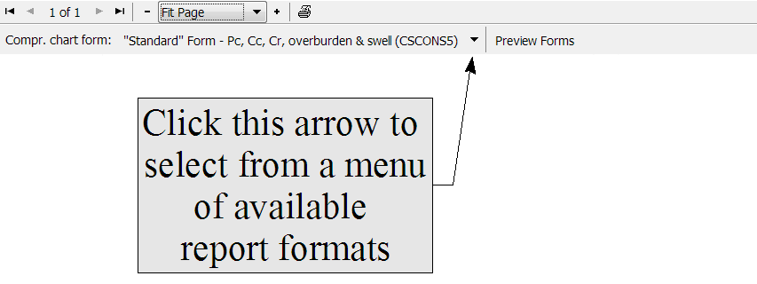 The software ships with many different chart report formats that you can use for printing your test data. (You can view samples of all of the program's report formats by clicking on the Preview Forms button.) To select a new report format, click on the button shown in the following figure: