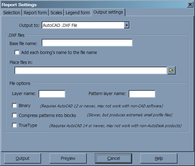 ) for everything on the form, meaning that .DXF reports are less attractive than their printed counterparts. The TrueType option allows you to generate .DXF files that look exactly like the printed versions -- however, some drawing and CAD programs do not support TrueType files.