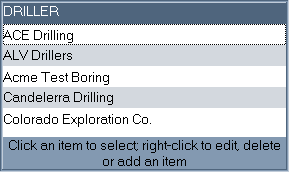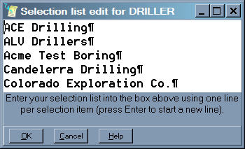 - Selection lists can also be used to easily insert boilerplate text into, for example, the boring location field. This can be very handy if the same basic text is always typed into a particular data entry field. (E.g.,