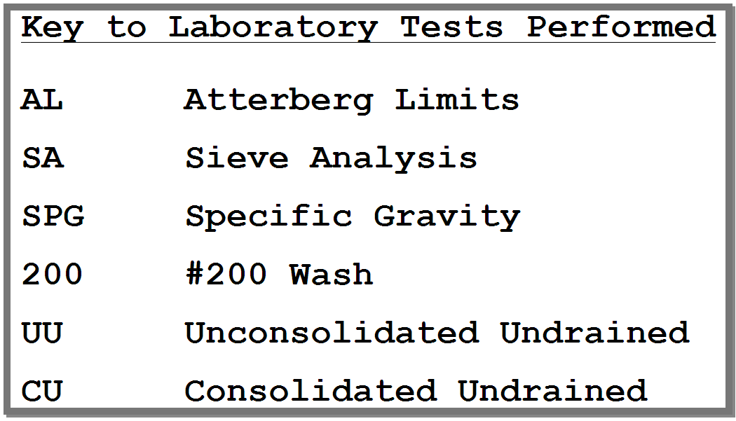 Printed legends can also include a list of text items -- this list can show the abbreviations used in your material descriptions, present a key to shear test types, etc. This figure demonstrates what an example text key looks like on a legend page.