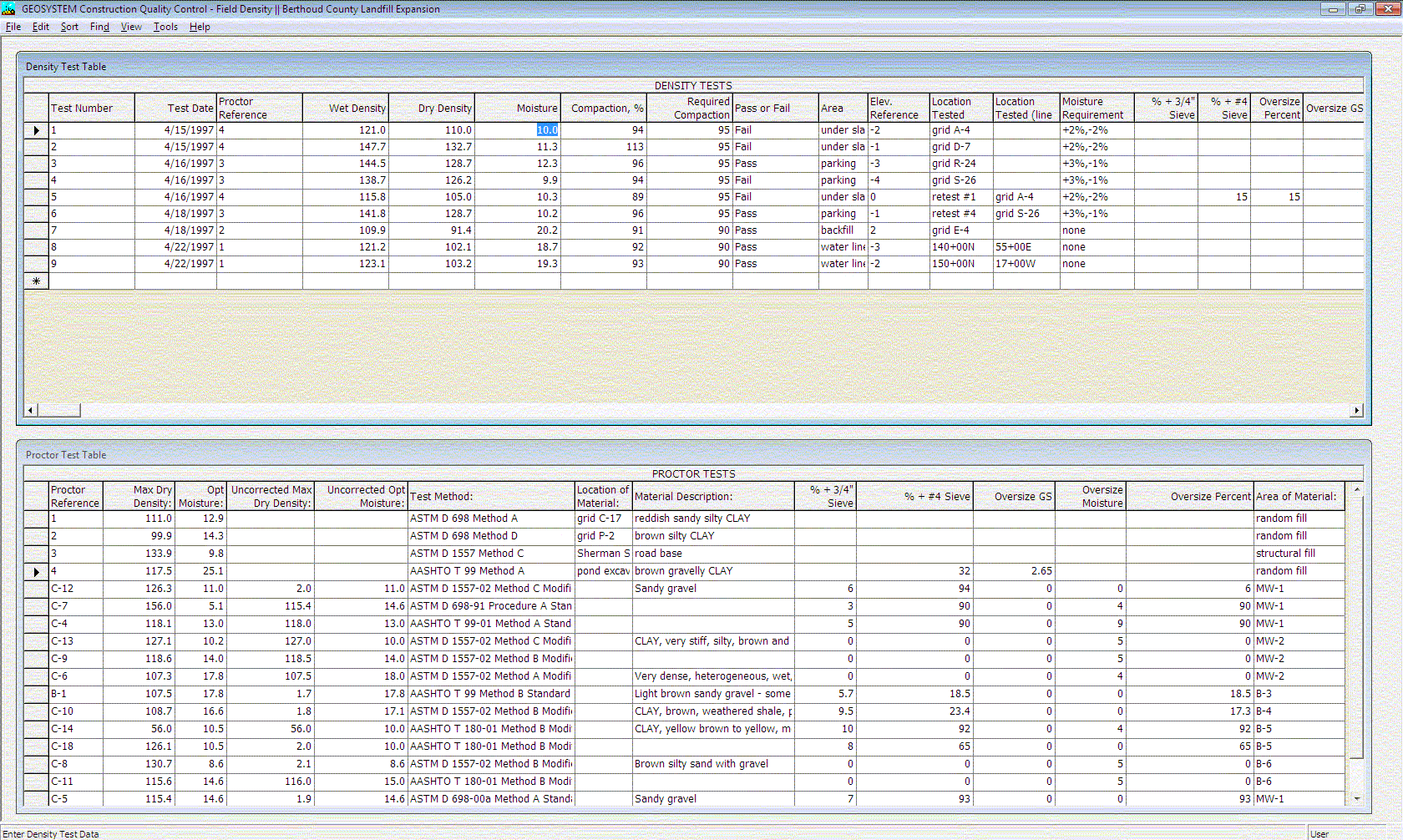 The GEOSYSTEM Quality Control - Density program (QC-Density) is a database-based program for reporting field density test results. Built in calculations find the percent compaction, report whether the test passed or failed, and even perform the AASHTO T 224 rock correction. A variety of stock report formats are available, and custom reports are available for a fee.