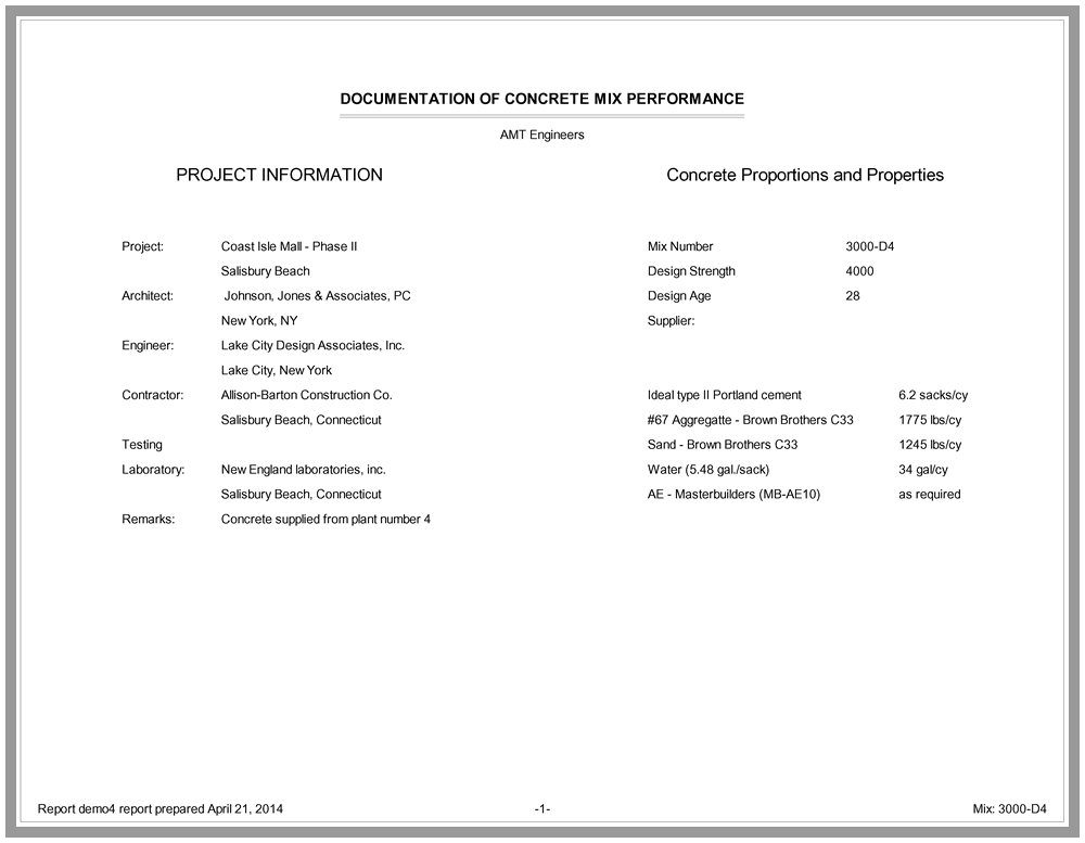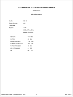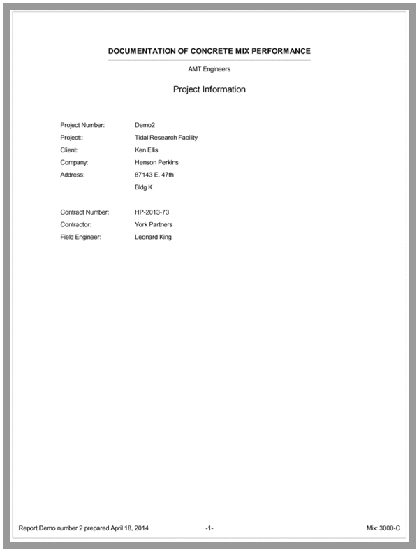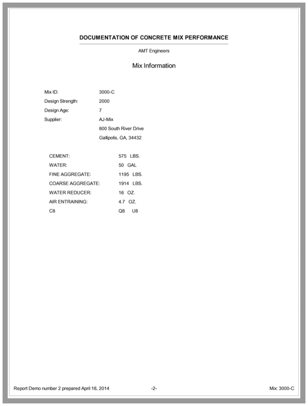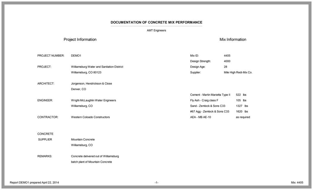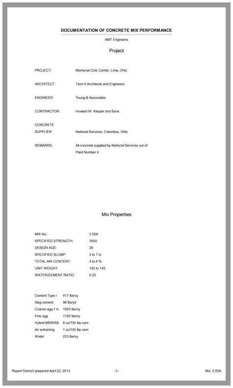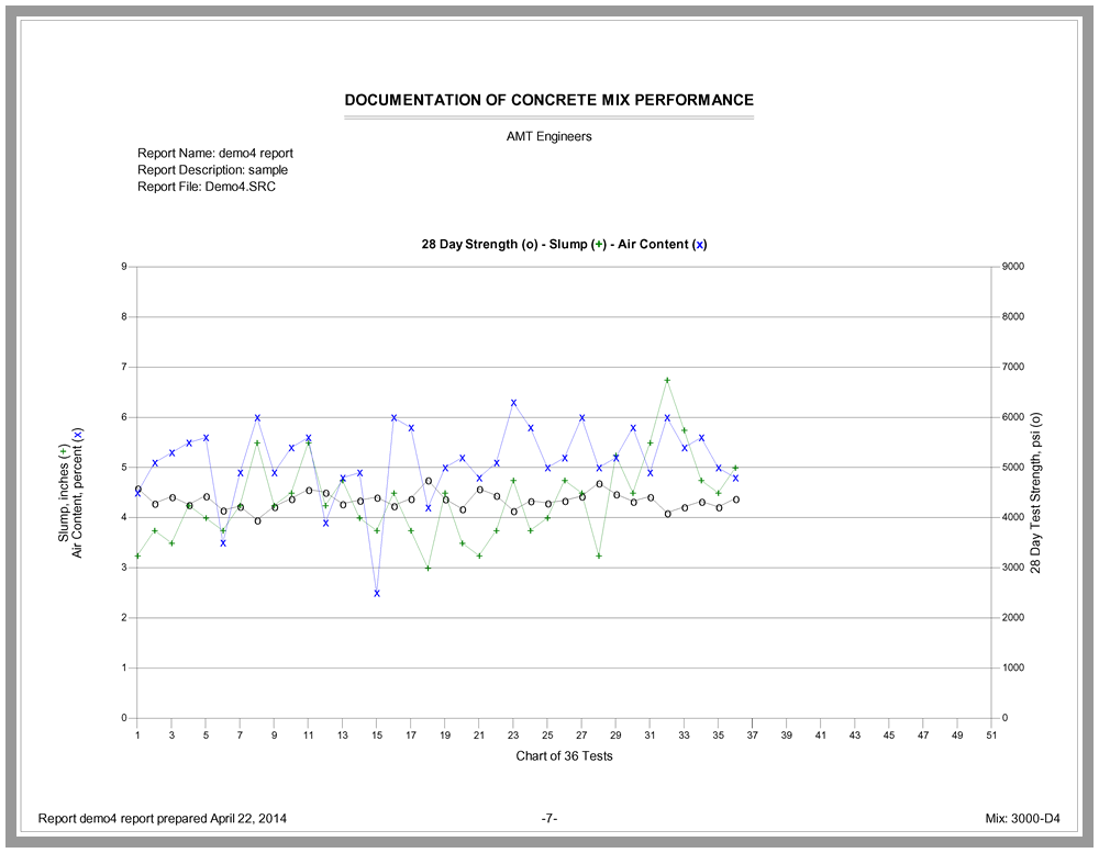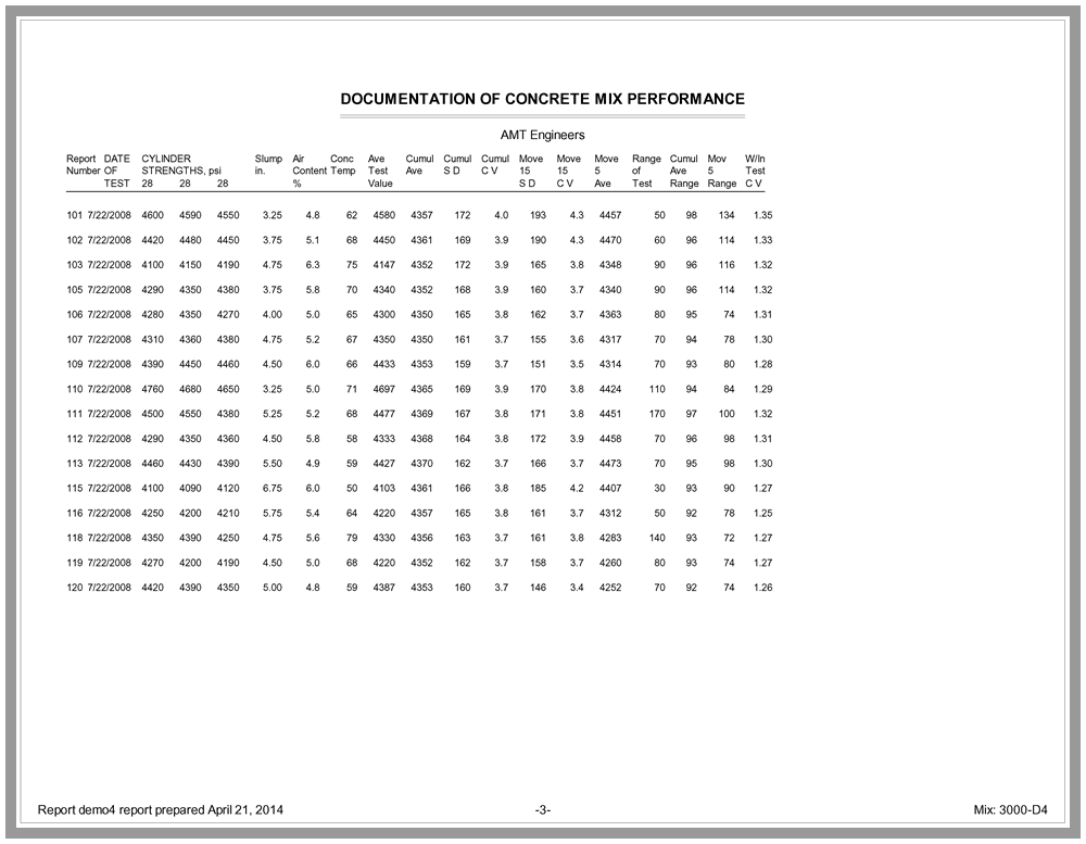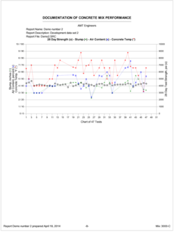 - Non-statistical items reported can include specimen strengths, test result, slump, air, and temperature