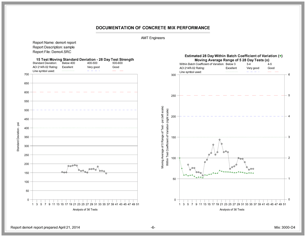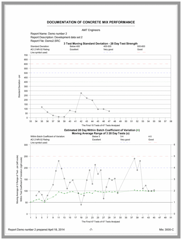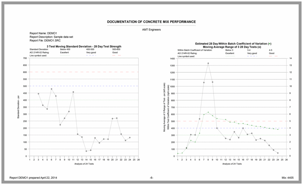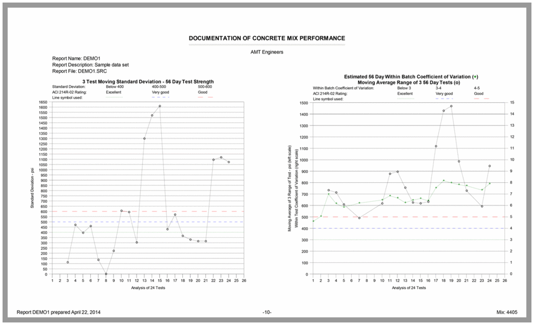 - Option to include or omit the ACI 214 ratings on the Standard Deviation Chart