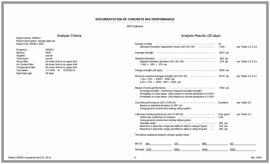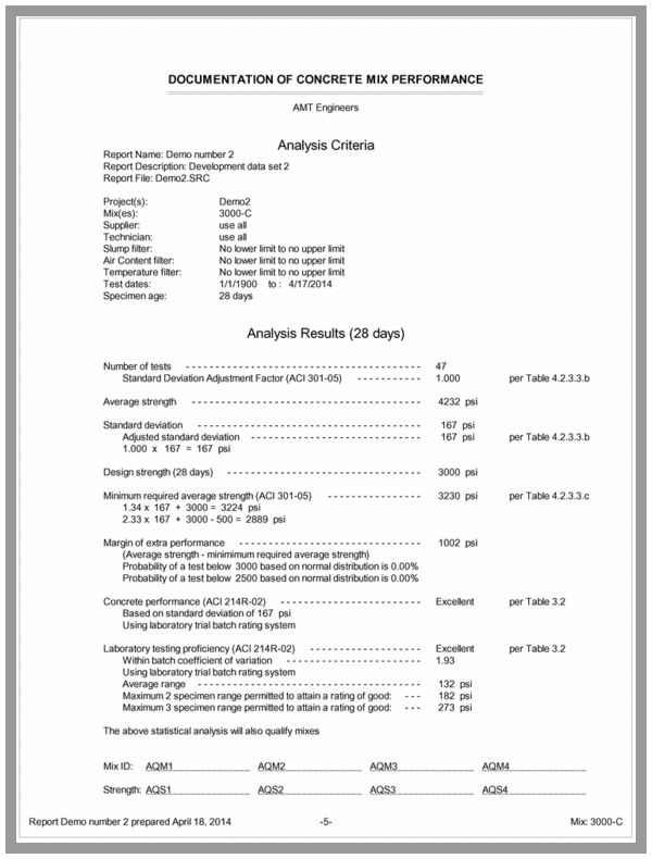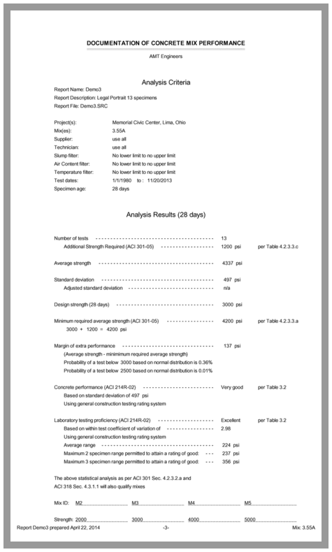 - Option to include or omit the ACI 214 ratings on the Range of Test Chart