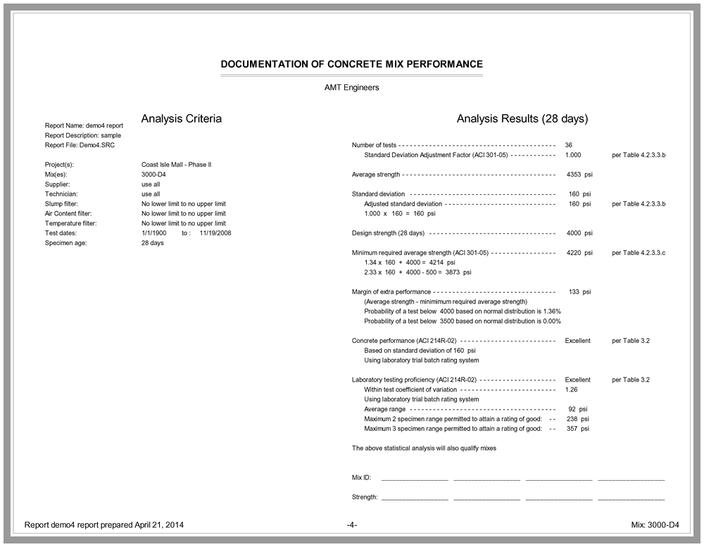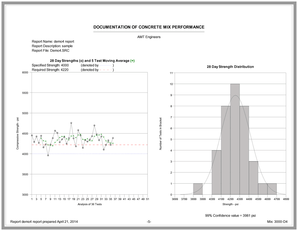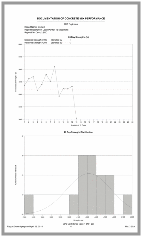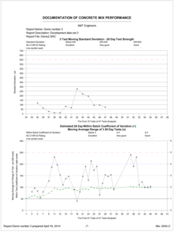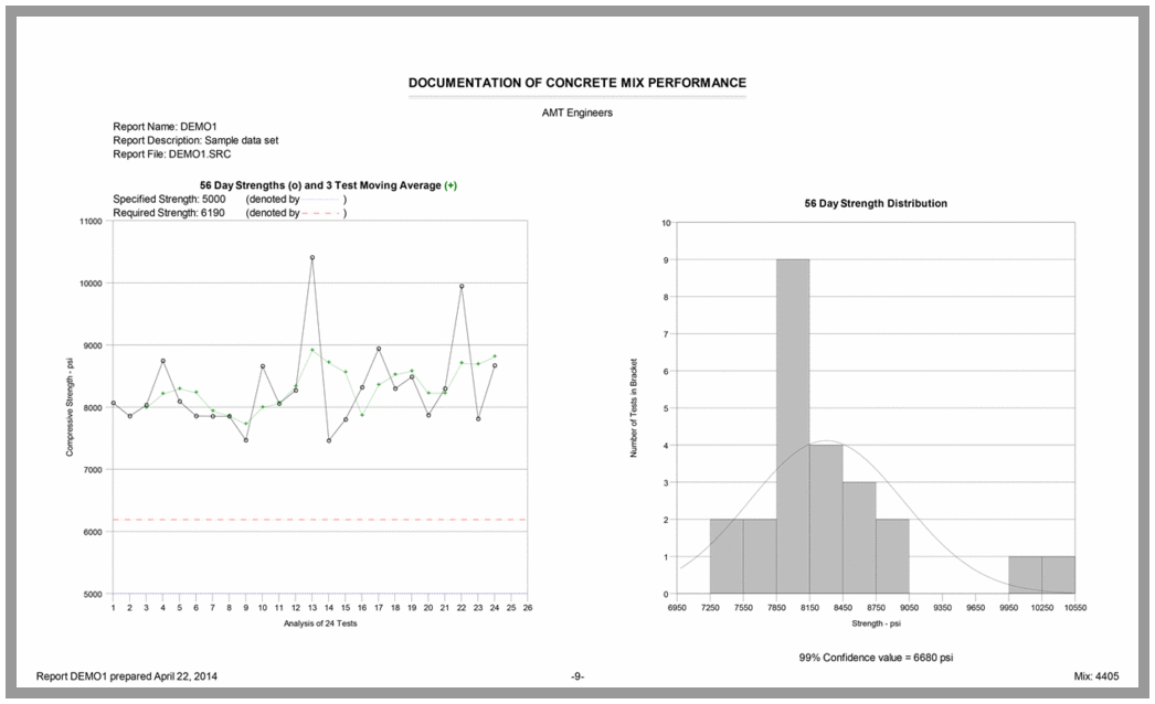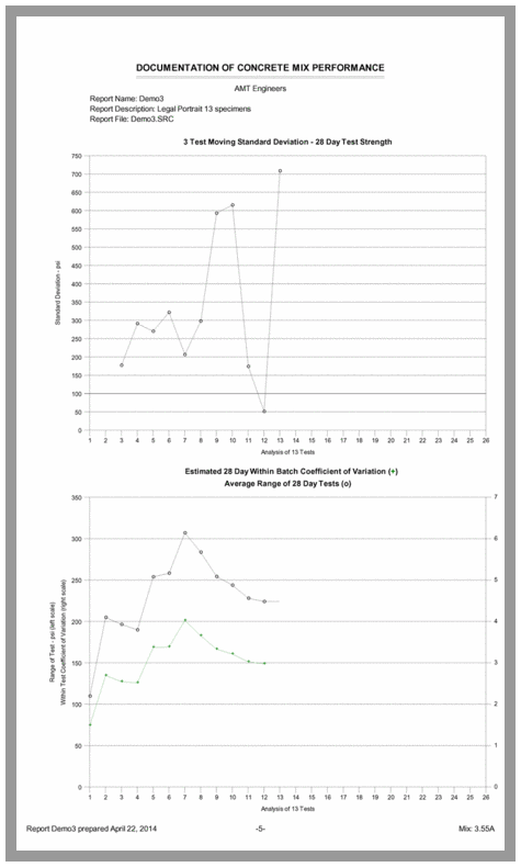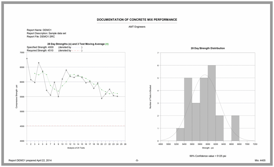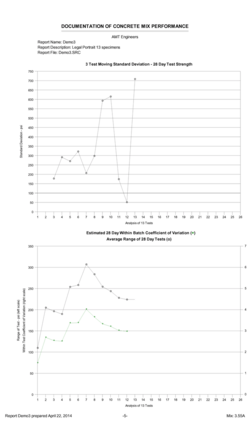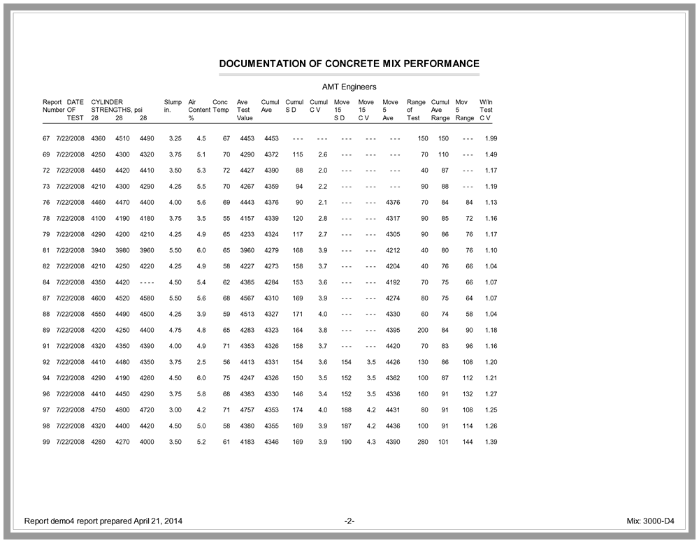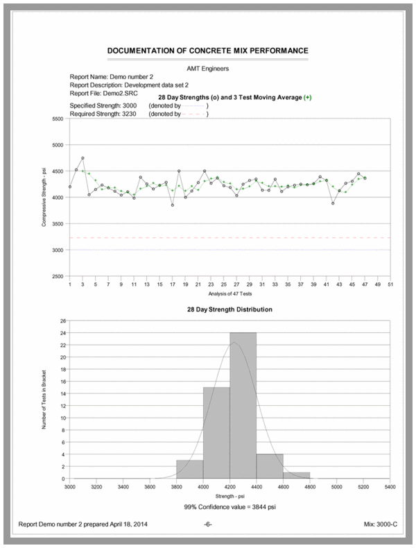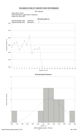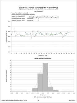 This program is a companion to our Quality Control-Concrete database software. QC-Statistics produces a complete mix performance document featuring statistical reports following ACI standards for minimum required average strength determination. Use on major projects to track mix compliance and performance and for identifying cost inefficiencies.